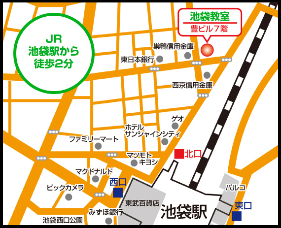 | 交通 | ■JR 池袋駅 池袋駅 北口から 徒歩2分 池袋駅 西口から 徒歩3分 ■東武東上線 池袋駅 南口から 徒歩3分 |