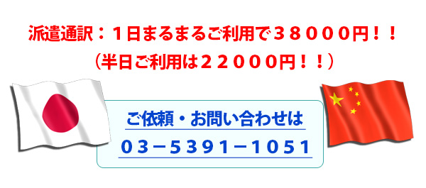 | お問い合わせ | 通訳日程・場所・通訳内容をお知らせください。 お問い合わせ窓口:03-5391-1051 |